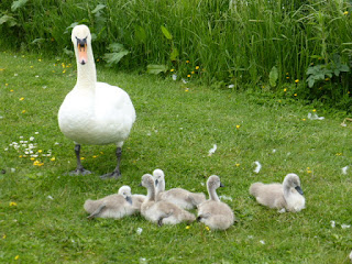 A much nicer bird is the swan, and there are plenty of them and their little ones about at the moment.